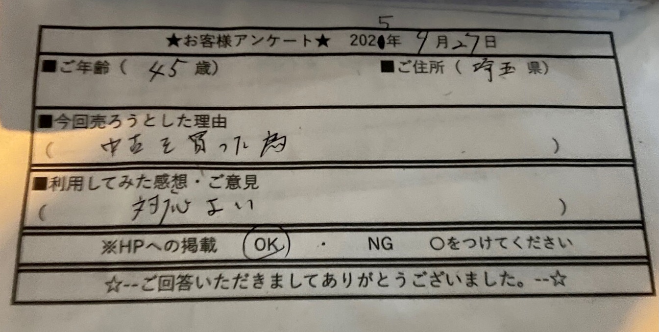 買取日付 2025年9月29日