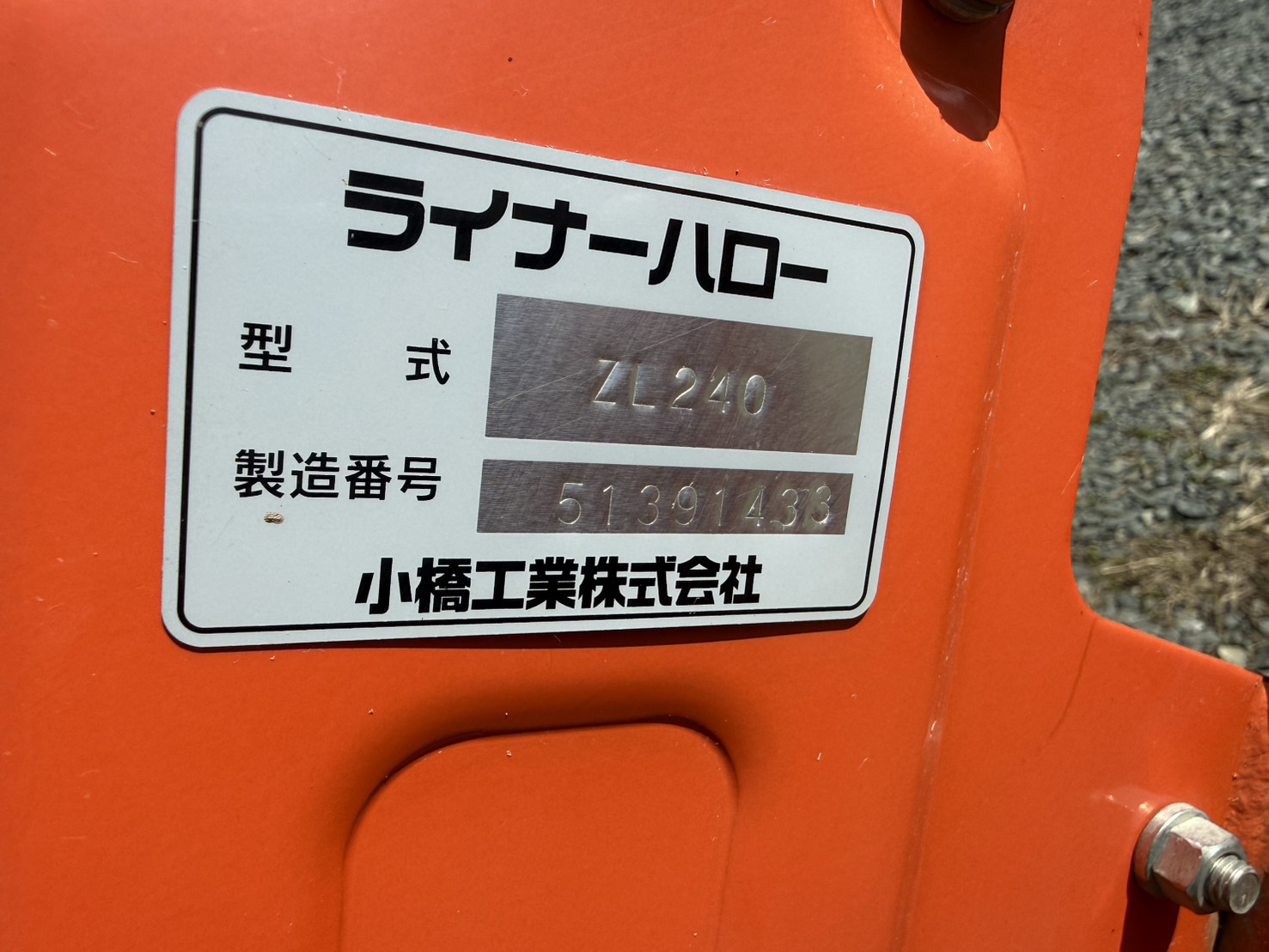 クボタ純正  コバシ ライナーハロー ZL240 Bヒッチ