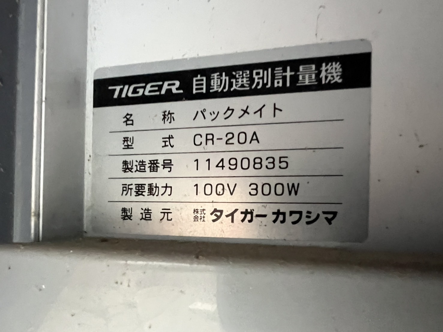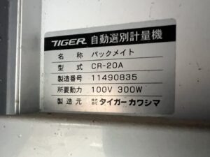 メーカー・品番 タイガー 自動選別計量機  パックメイト CR-20A